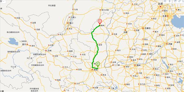 方案一:西咸北环线高速公路、西延高速公路、包茂高速公路,用时6小时39分钟,共595公里。(最快、最短)