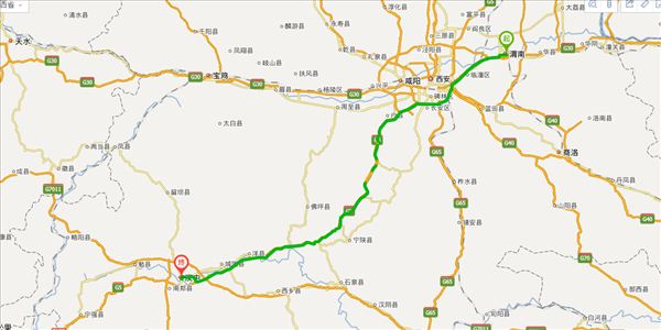 方案二:连天线公路、京昆线公路、眉太线公路、S210公路、G316公路,用时9小时27分钟,共412公里。(不走高速,不用过路费)