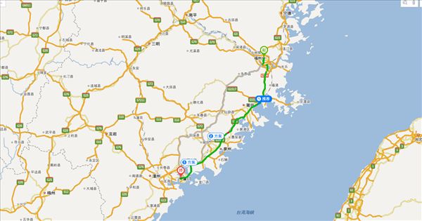 方案二:沈海高速公路,用时3小时2分钟,共263公里。