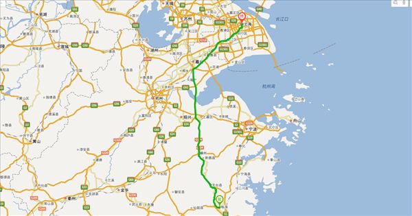 方案二:沈海高速公路、常台高速公路、沪昆高速公路,用时3小时57分钟,共336公里。