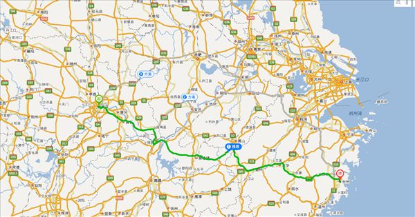 方案一:福银高速公路、沪渝高速公路、杭瑞高速公路、京台高速公路、沪昆高速公路、长深高速公路、台金高速公路,用时10小时54分钟,共928公里。(最快)