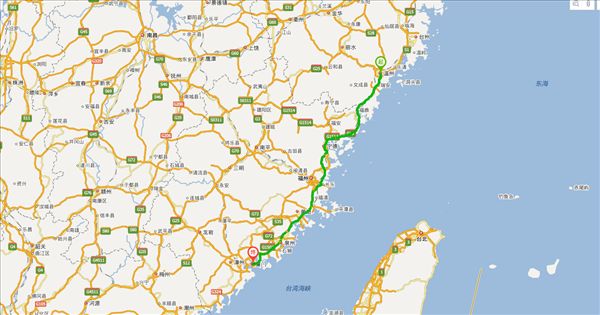 方案二:沈海高速公路,用时6小时44分钟,共568公里。