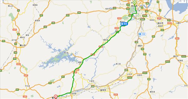 方案一:长深高速公路、杭新景高速公路、沪昆高速公路,用时3小时8分钟,共219公里。(最快)