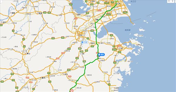 方案二:沪昆高速公路、诸永高速公路、东永高速公路、长深高速公路,用时5小时26分钟,共416公里。