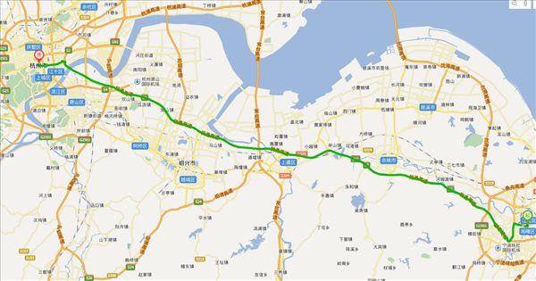 方案三:江北连接线公路、古乍线公路、纬五路公路、杭沈线公路、钱陶公路公路、彩虹大道公路,用时4小时18分钟,共172公里。(不走高速,不用过路费)