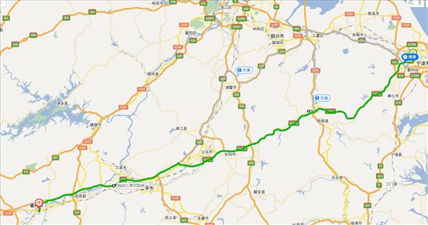方案二:甬金高速公路、沪昆高速公路,用时4小时6分钟,共312公里。