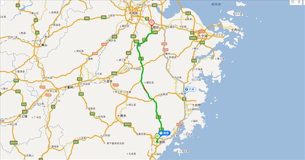 方案二:诸永高速公路、绍诸高速公路,用时3小时30分钟,共271公里。