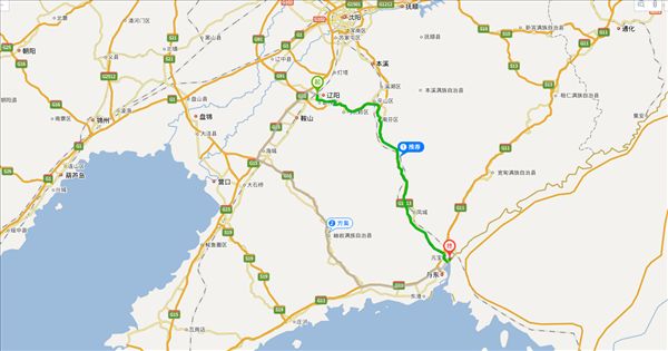 方案一:辽中环线高速公路、丹阜高速公路,用时2小时48分钟,共213公里。(最快)