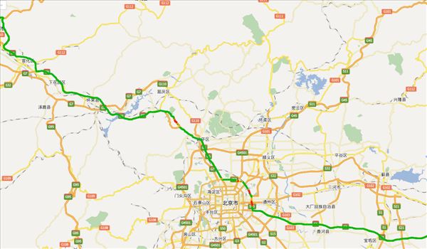 方案二:唐丰路公路、G102公路、京哈线公路、京哈路公路、潞苑南大街公路、朝阳北路公路、京藏高速辅路公路、京银路公路、京银线公路,用时10小时20分钟,共387公里。(不走高速,不用过路费)