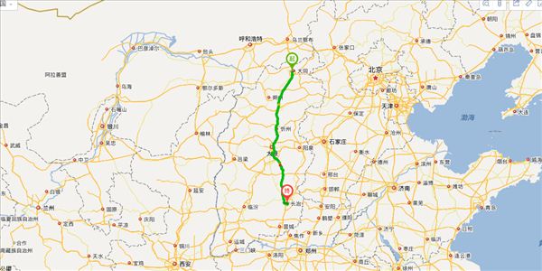 方案二:二长线公路、京昆线公路、京原北路公路、阳兴大道公路、滨河东路公路,用时11小时7分钟,共522公里。(不走高速,不用过路费)