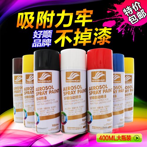 品牌:好顺 颜色分类:亚光黑【店主实拍】苍穹蓝【店主实拍】亮黑【店主实拍】中黄色【店主实拍】土豪金【店主实拍】本色银【店主实拍】樱花粉【店主实拍】蔷薇红【店主实拍】荧光红【店主实拍】荧光黄【店主实拍】荧光绿【店主实拍】芙蓉白【店主实拍】象牙白【店主实拍】紫罗兰【店主实拍】活力橙【店主实拍】中灰色【店主实拍】土豪金【修理店专用】夜光绿【象牙白打底】紫蓝绿【黑色打底】荧光绿【修理店专用】金属闪点色【红绿金】【小瓶装】买3送1再送喷漆工具【全网份量足品牌响】