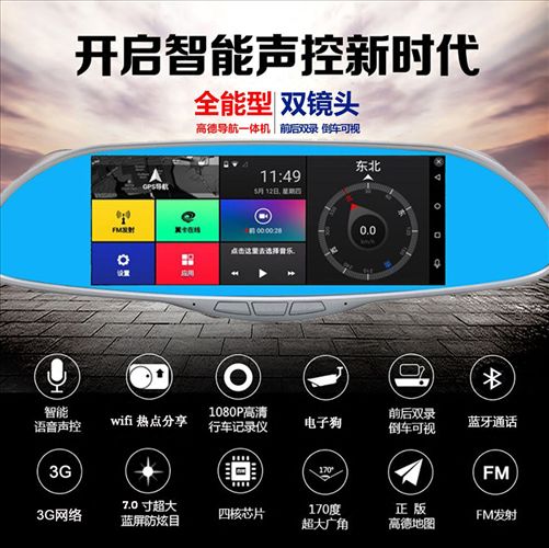 4.路探行车记录仪7寸屏专车专用智能云声控导航电子狗后视镜一体机