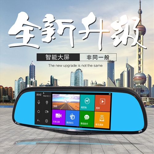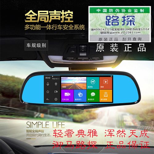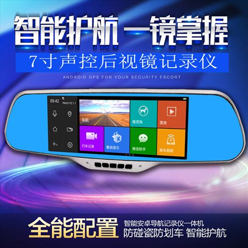 1.路探行车记录仪带导航电子狗双镜头声控高清蓝牙7寸后视镜一体机