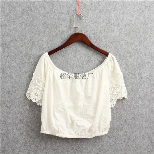 2.麻袖2016夏季新款女装松紧 拼接外贸短上衣原单露肩 T恤71%(含)-8