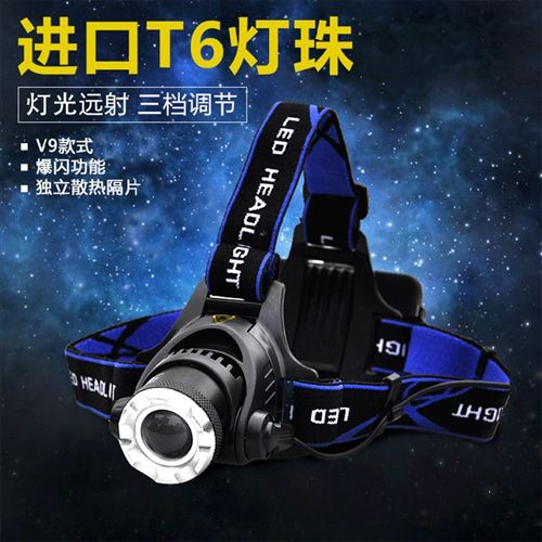 2.户外钓鱼 头灯强光可充电调焦T6氙气L2远射黄光露营探照矿灯LED