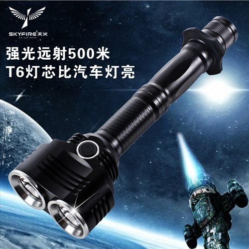 5.天火T6强光手电筒 充电家用露营户外远射手提氙气探照灯