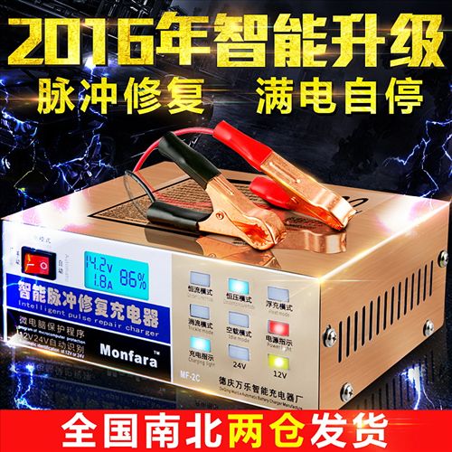 1.汽车电瓶充电器12V24V伏摩托车纯铜智能脉冲修复蓄电池自动充电机