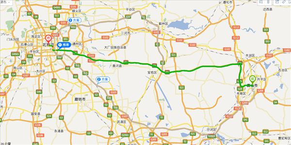 唐通线、S304、通香路、京哈高速,用时4小时10分钟,共164公里。