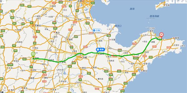 人民东路、青兰高速、济南绕城高速、京沪高速、青银高速、荣潍高速、沈海高速、荣乌高速,用时7小时39分钟,共692公里。