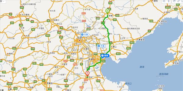 长深高速、滨石高速、津沧高速、京沪高速、浮阳北大道,用时4小时42分钟,共404公里。