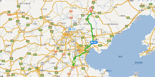 京沪高速、津沧高速、滨石高速、长深高速、唐津高速,用时4小时40分钟,共406公里。