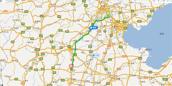 廊涿高速、京港澳高速,用时4小时6分钟,共391公里。
