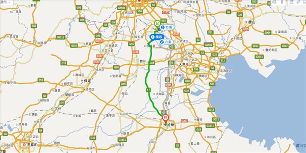 廊崔线、廊沧高速、浮阳北大道,用时3小时25分钟,共152公里。