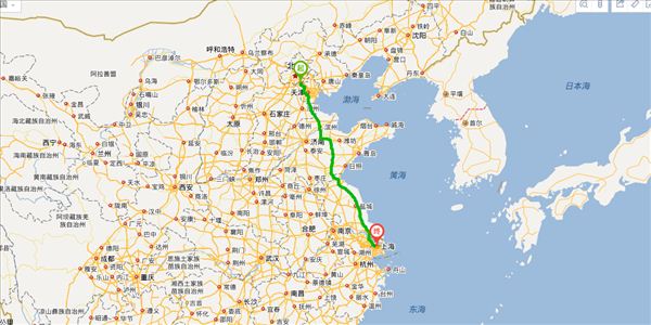 京沪高速、荣乌高速、长深高速、滨莱高速、青银高速、沈海高速、沪嘉高速,用时12小时20分钟,共1170公里。