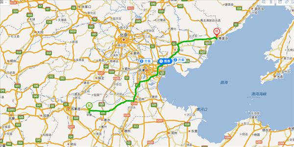 黄石高速、京沪高速、津沧高速、滨石高速、长深高速、唐津高速、京哈高速,用时5小时43分钟,共528公里。