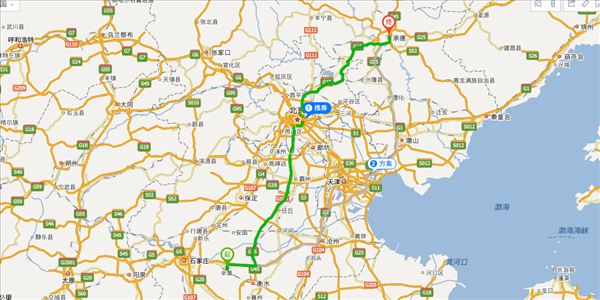 黄石高速、大广高速、京开高速、二环、京承高速、长深高速,用时6小时35分钟,共517公里。