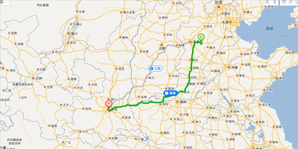 黄石高速、京昆高速、榆祁高速,用时10小时0分钟,共867公里。
