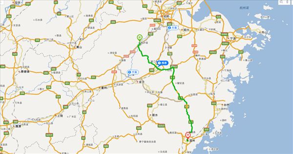 方案二:S210公路、蒋义线公路、义浦线公路、金义东公路公路、黄南线公路、大永线公路、碧街路公路、温寿线公路、京福线公路,用时7小时17分钟,共349公里。(不走高速,不用过路费)