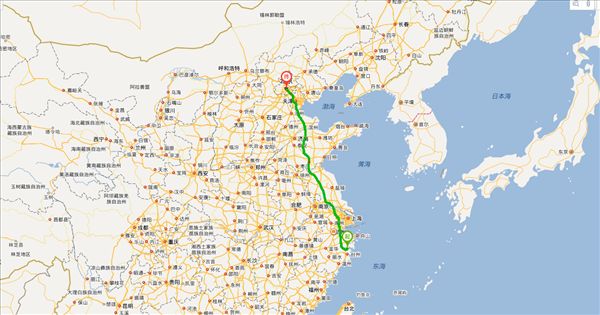 方案二:常台高速公路、京沪高速公路、滨莱高速公路、长深高速公路、荣乌高速公路,用时16小时46分钟,共1446公里。(时间最快)