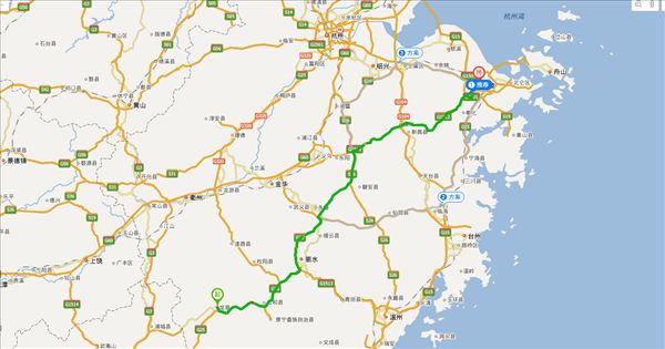 方案三:五三省道公路、S328公路、绿谷大道公路、温寿线公路、大永线公路、S310公路、S309公路、三六省道公路、雅戈尔大道公路,用时8小时51分钟,共420公里。(不走高速,不用过路费)