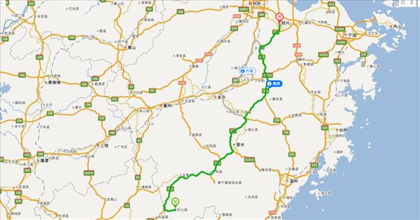 方案三:S329公路、新杉路公路、青景庆线公路、云寿线公路、S328公路、绿谷大道公路、温寿线公路、大永线公路、S217公路、阳光大道公路、S103公路、诸安线公路、S308公路,用时9小时34分钟,共447公里。(不走高速,不用过路费)