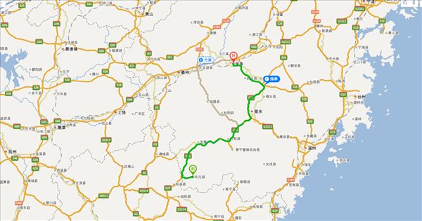 方案一:五四省道公路、长深高速公路、龙丽高速公路、S220公路、汀杨线公路,用时4小时33分钟,共285公里。(路程最短)