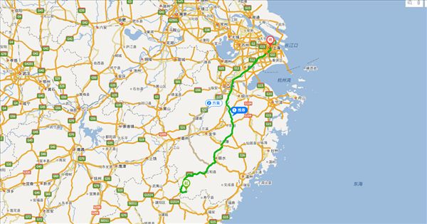 方案二:五四省道公路、长深高速公路、东永高速公路、诸永高速公路、沪昆高速公路,用时7小时13分钟,共592公里。(时间最快)