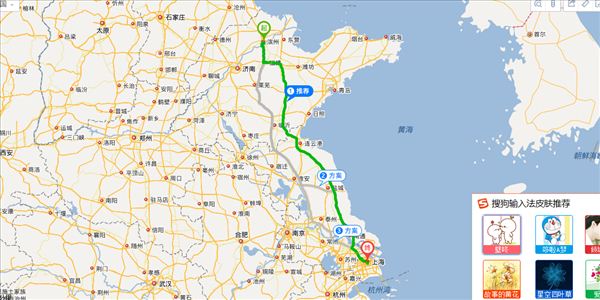 滨莱高速、青银高速、长深高速、沈海高速、沪嘉高速,用时9小时10分钟,共873公里。