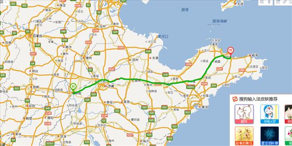 青兰高速、济南绕城高速、京沪高速、青银高速、荣潍高速、沈海高速、荣乌高速,用时6小时18分钟,共558公里。