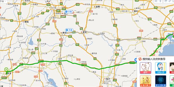 日兰高速、济广高速、沈海高速、青兰高速,用时6小时2分钟,共530公里。