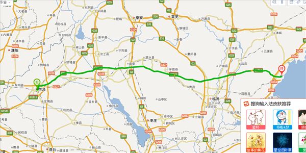 日兰高速、济广高速、迎宾路,用时4小时40分钟,共394公里。