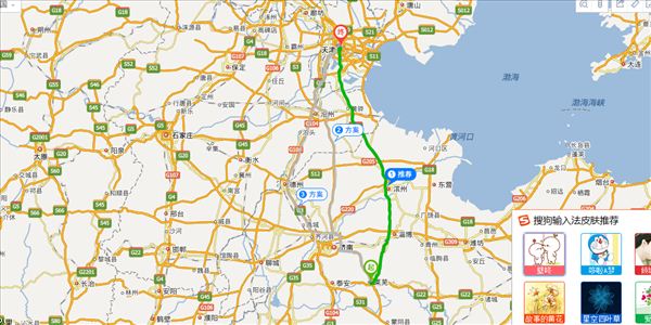滨莱高速、长深高速、荣乌高速、卫津南路,用时4小时12分钟,共357公里。