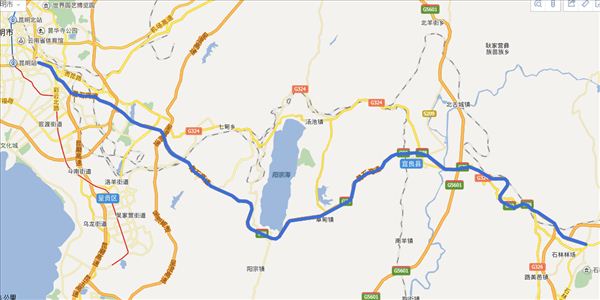 昆石高速公路由昆明至石林风景区,全长78.07公里,工程总投资38.06亿元。高速公路沿途隧道穿山,桥梁飞挂峻岭,绿草鲜花相伴,是红土高原上的靓丽风景线。昆石高速公路是国家西部大开发重点公路建设项目,2003年11月16日建成通车。[1]