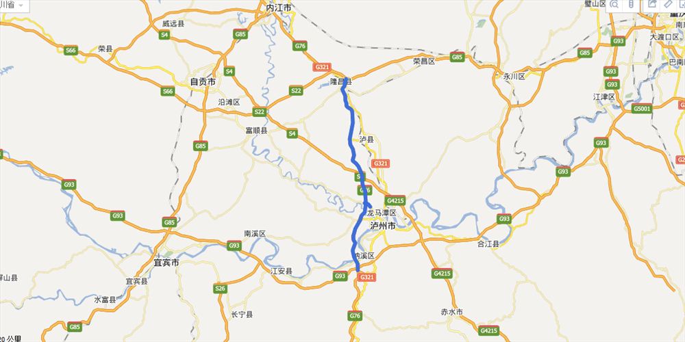 隆纳高速公路起于成渝高速公路隆昌互通式立交,经过内江市隆昌县,泸州市泸县、龙马潭区、江阳区,止于泸州纳溪区渠坝,全长88公里(含连接线),设11个收费站(现开通10个)。1996年11月18日开工建设,2000年11月28日全线建成通车,总投资22.75亿元。