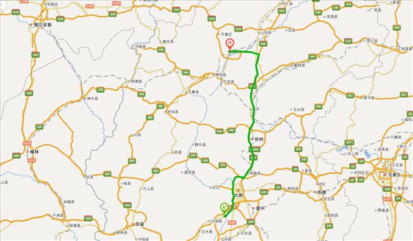 歧银线、太原绕城高速、二广高速、朔州绕城高速,用时3小时2分钟,共257公里。