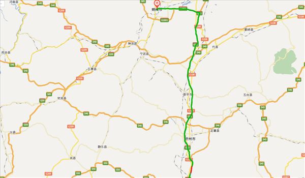 二广高速、朔州绕城高速,用时2小时16分钟,共184公里。