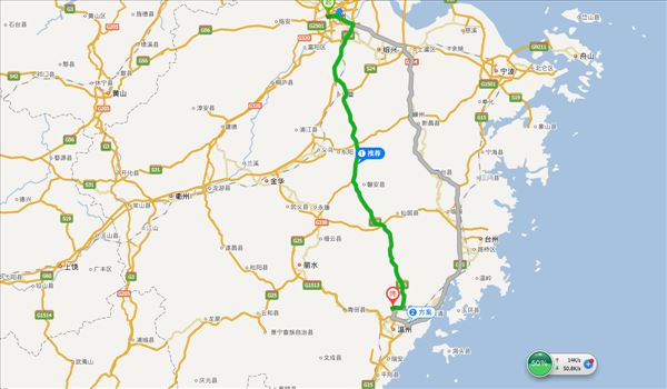 杭州绕城高速、沪昆高速、诸永高速,用时4小时25分钟,共286公里。