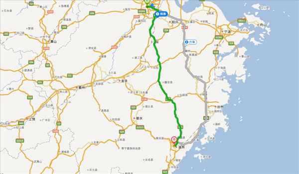 沪昆高速、诸永高速,用时4小时56分钟,共293公里。