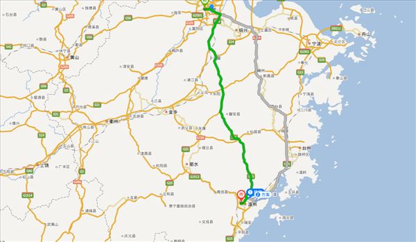 沪昆高速、诸永高速,用时5小时6分钟,共295公里。