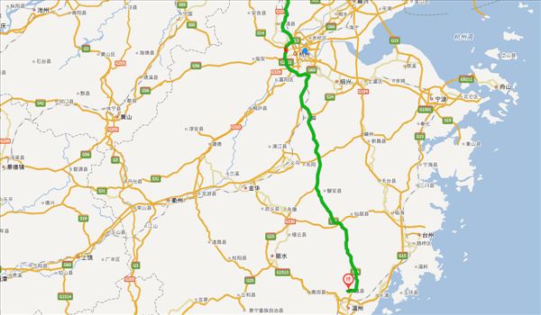 长深高速、杭州绕城高速、沪昆高速、诸永高速,用时5小时22分钟,共373公里。